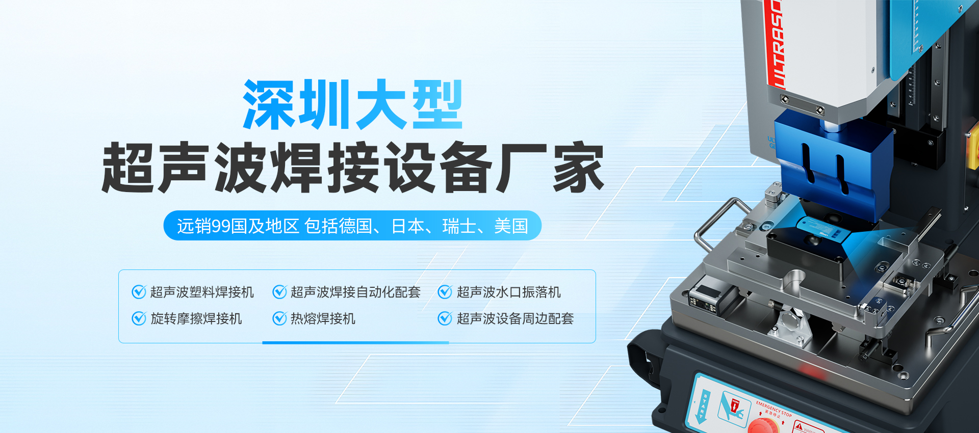 為海內(nèi)外各行業(yè)、企業(yè)提供了大量穩(wěn)定性強的優(yōu)質(zhì)超聲波塑焊設備及應用解決方案